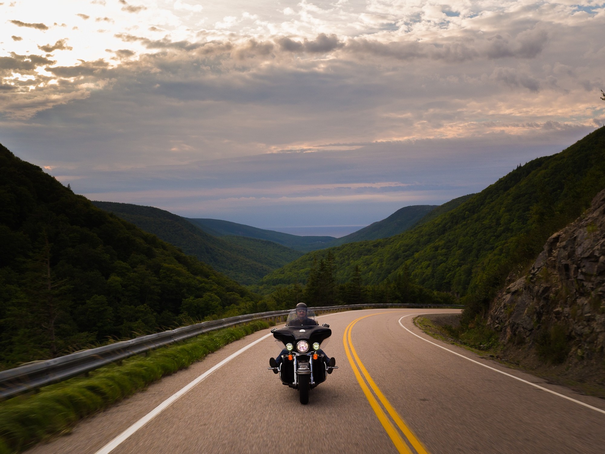 The province’s 13,300 km (8,264 mi) of coastline encompass the dramatic cliffs of the Cape Breton Highlands, the rolling fields of the Annapolis Valley alongside the Bay of Fundy, endless sandy beaches along the Northumberland Shore, the granite drumlins of Peggy’s Cove, and the beauty of lighthouses that dot the rugged outreaches of the Southern and Eastern Shores of Nova Scotia. This province was made for motorcycle touring.