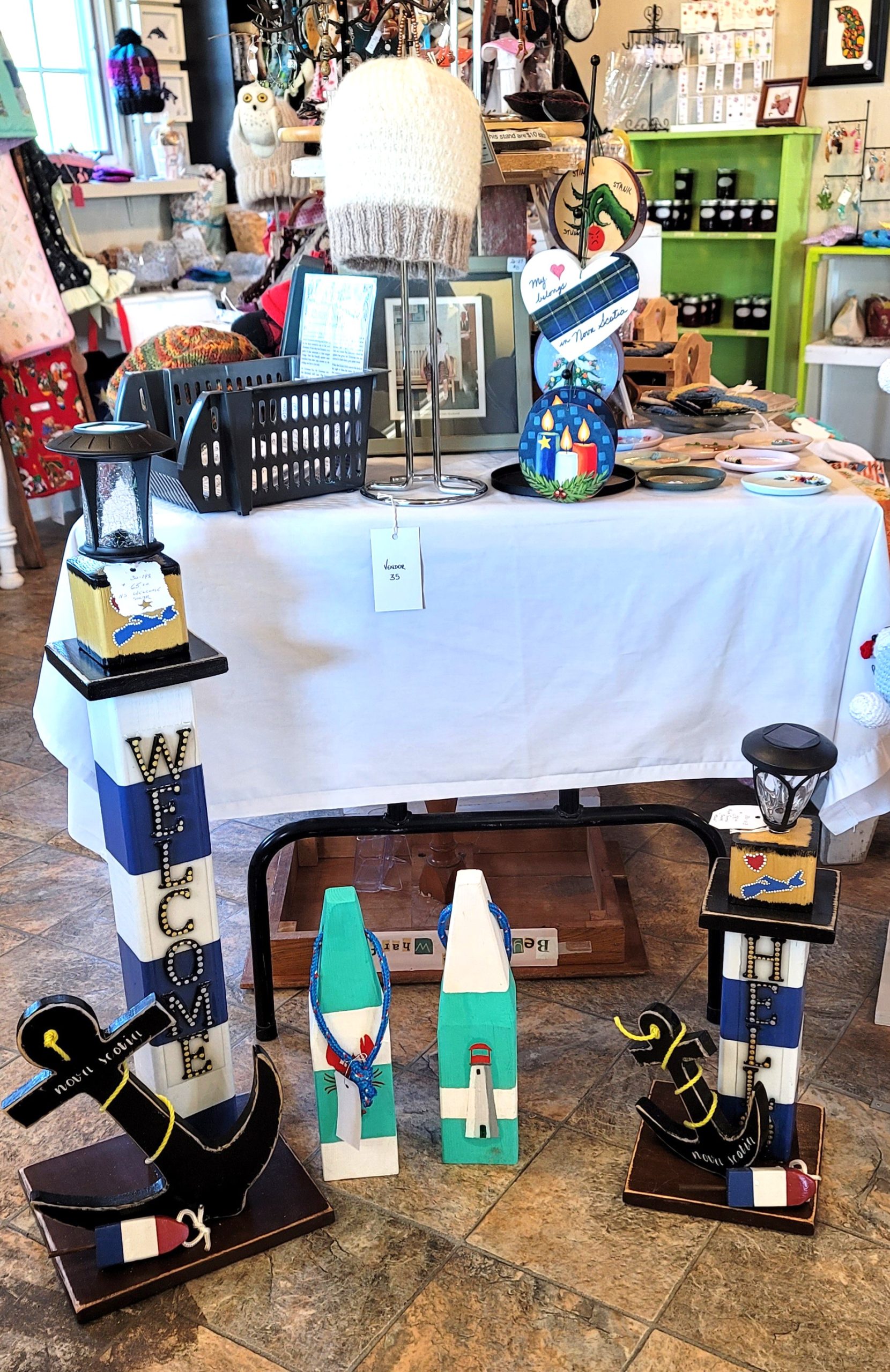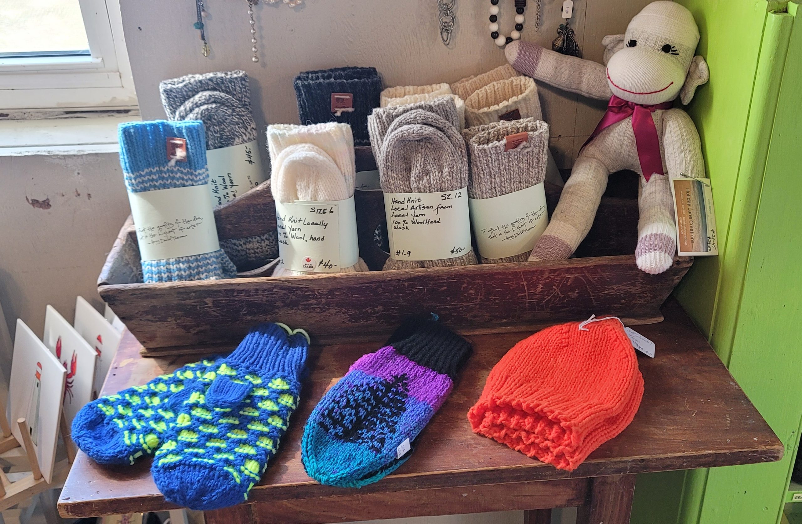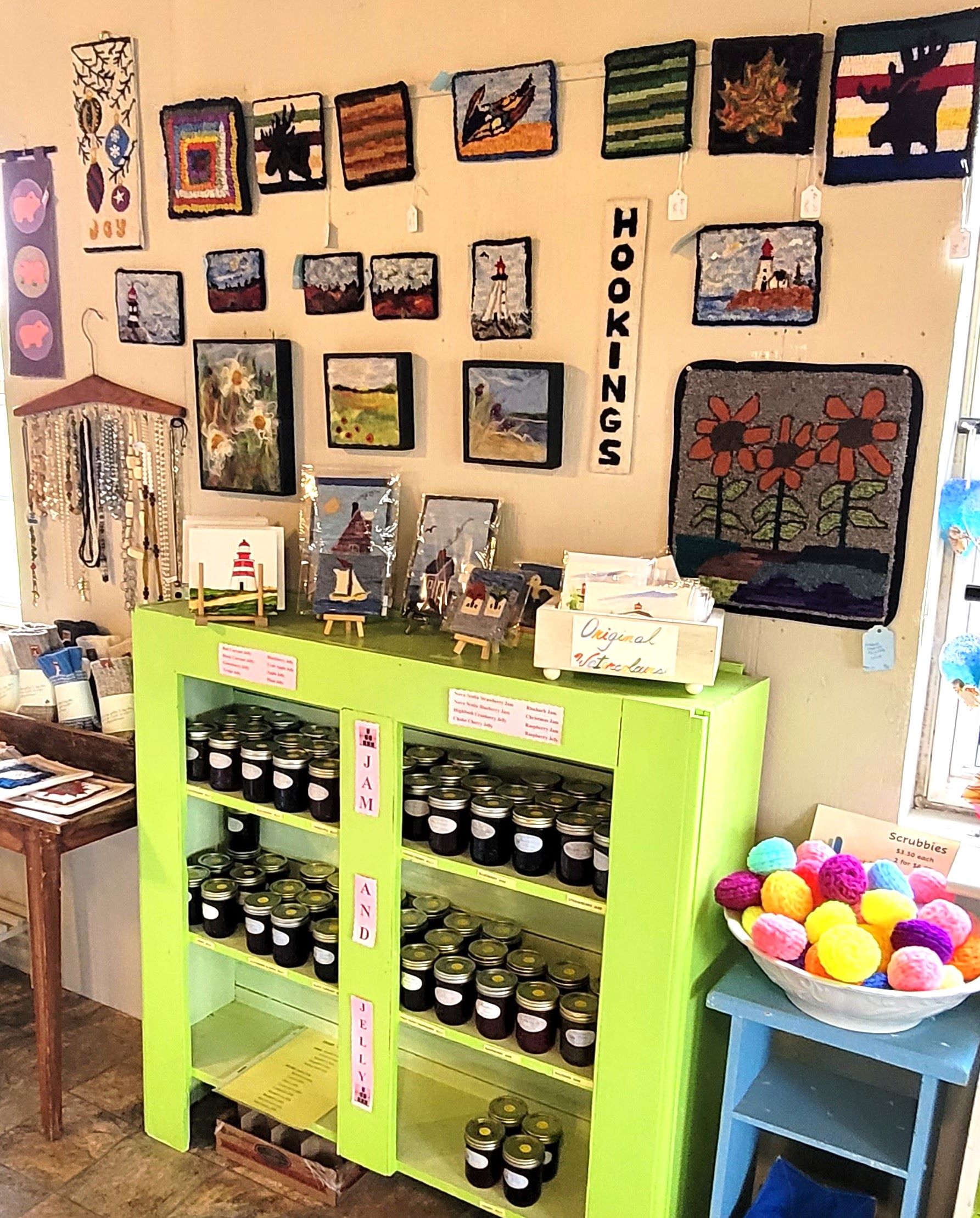 An emporium of locally handcrafted items including collectibles, pottery, stained & fused glass, and all-natural body care products. Fibre arts such as rug hooking & felting, weaving, knit & crochet and wool socks. You’ll also find art cards and wooden decor along with delicious Nova Scotia oatcakes, jams, pickles & jellies, local honey and beeswax related items.