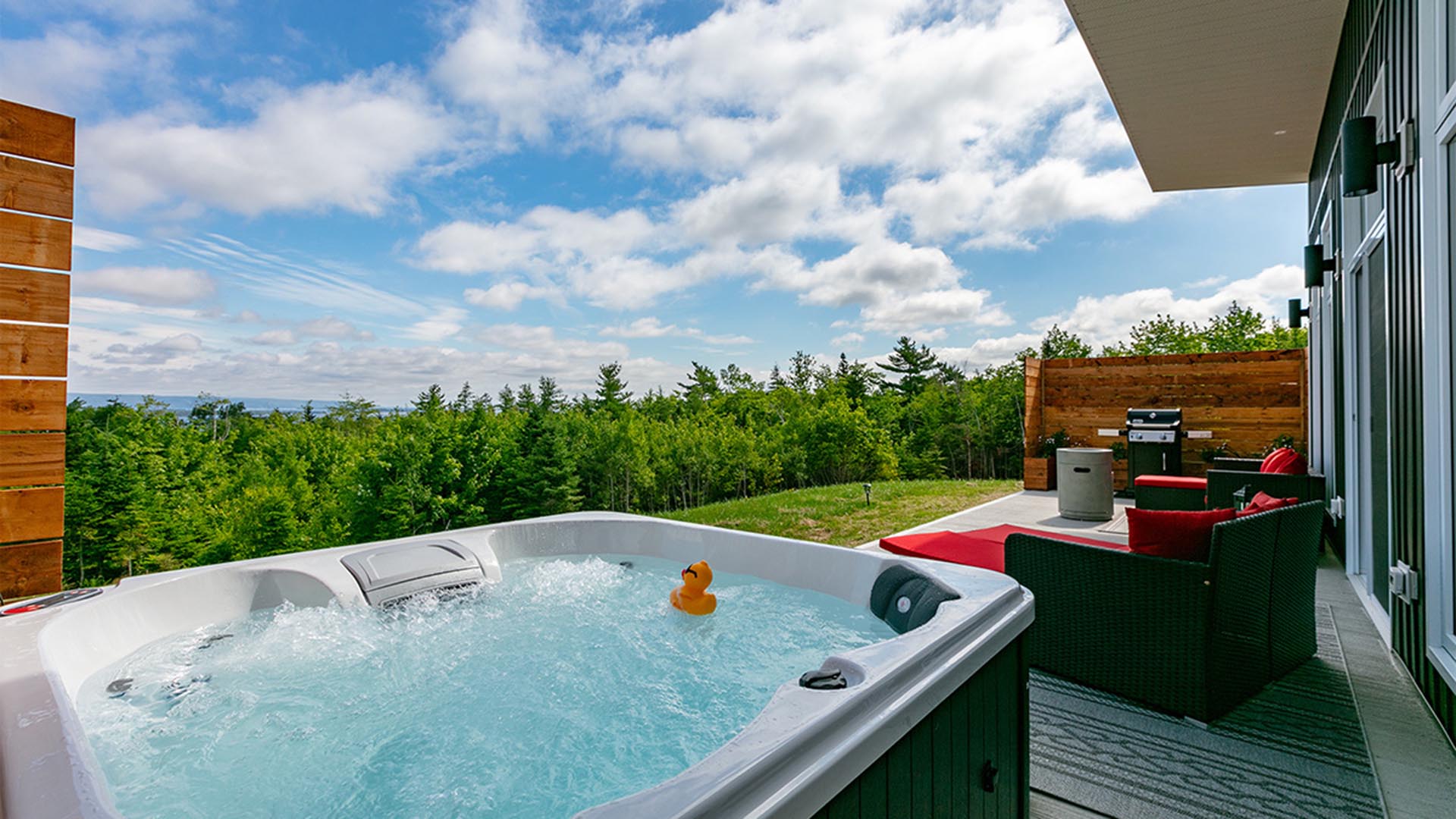 After an adventurous day of exploring or a day spent simply relaxing, treat yourself and wind down in your own private hot tub with a glass of your favourite drink or relax on the patio wrapped in a cozy robe and slippers.