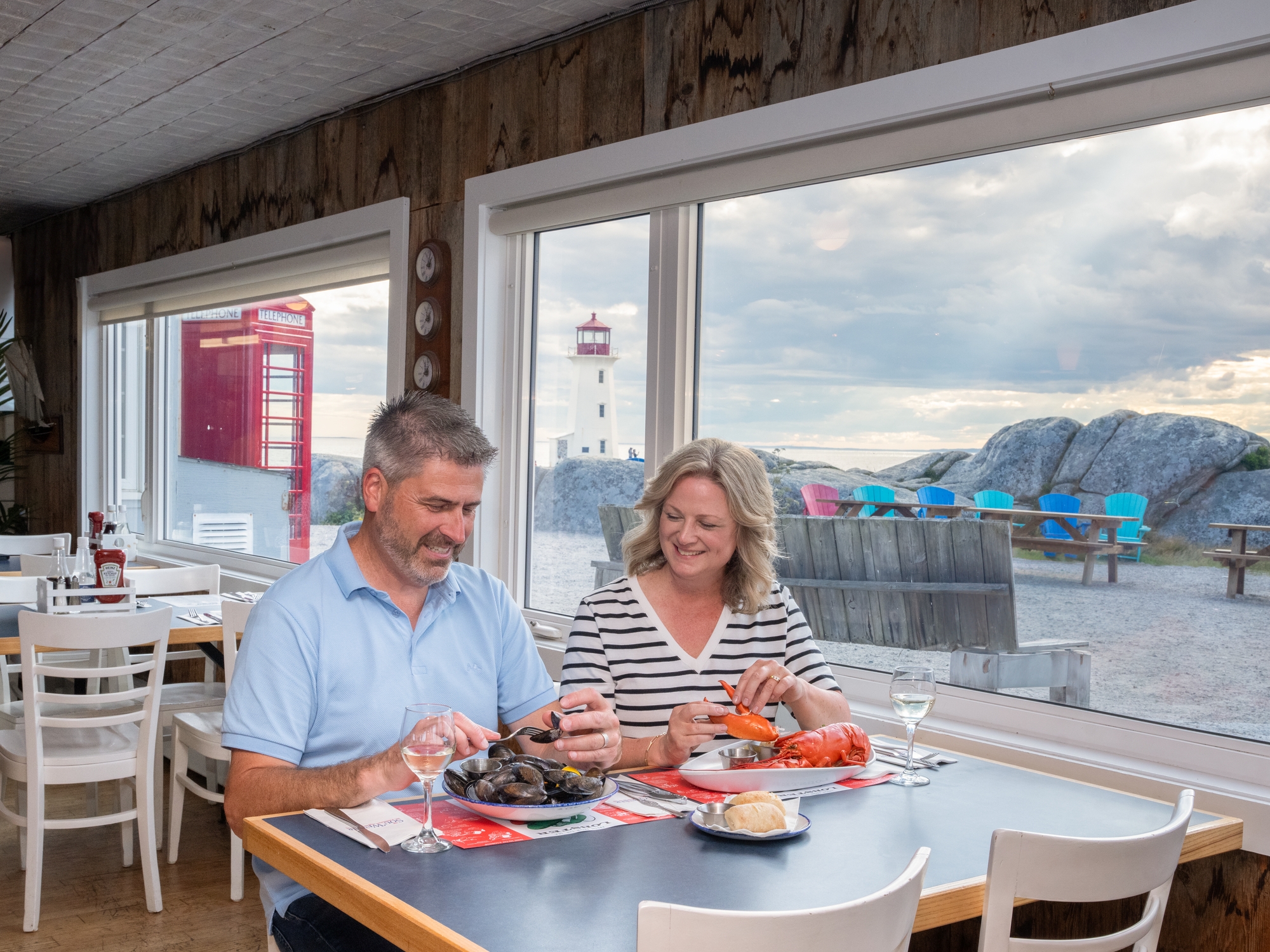 The Sou’Wester Restaurant and Gift Shop, situated at the top of the tiny fishing village of Peggy’s Cove overlooking the famous Peggys Cove Lighthouse in Peggy’s Cove, specializes in home-style meals. We feature seafood chowder, fish and chips, haddock dinners and fresh-cooked lobster from our own lobster pound. Dessert specialities include homemade gingerbread and apple crisp.