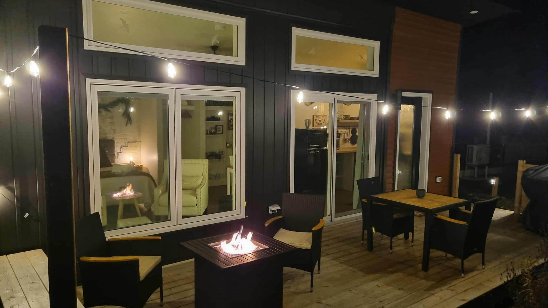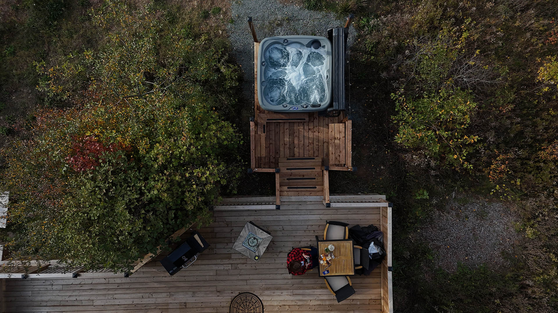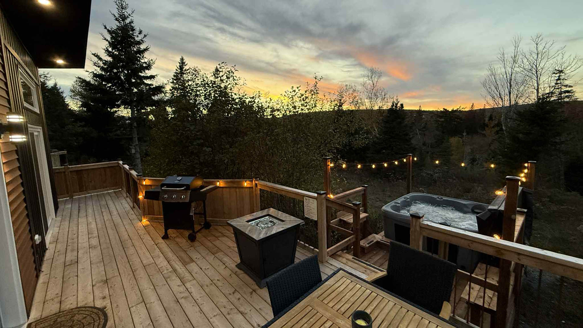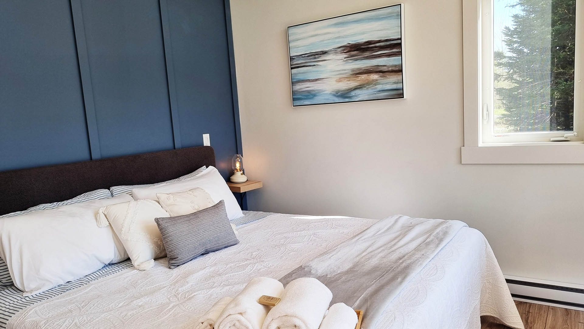 Cabin 1- Sleeps 2- The Watervale Cabin is our East Coast retreat, with a palette inspired by serene Nova Scotia beaches like Melmerby Beach. Designed for two, this cozy cabin features a comfortable king-size bed, a kitchenette, and a BBQ. Relax on your private deck with your favorite book in the afternoon, and as night falls, enjoy the stars by your own propane firepit or the wood-burning firepit in the common area.