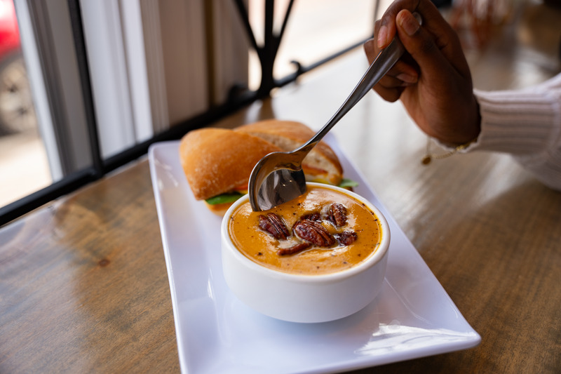 - Lunch at The Overstreet Café to enjoy house-made soups, sandwiches, and sweets. Choose to dine-in or take-out. Choose either a sandwich or soup with scone, as well as dessert and latte, coffee, or tea. Their Sunrise Breakfast Sandwich is a customer favourite!
