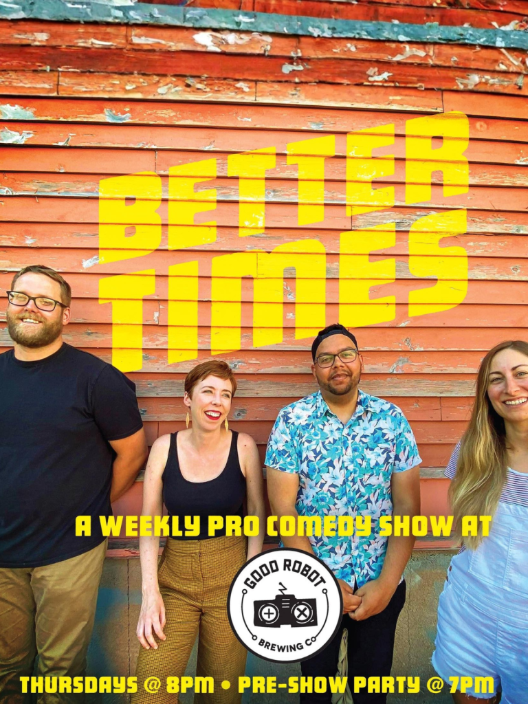 Better Times Comedy is an award-winning stand-up comedy show at Good Robot Brewing (Robie St.) every Thursday evening from 8pm to 10pm, year-round.