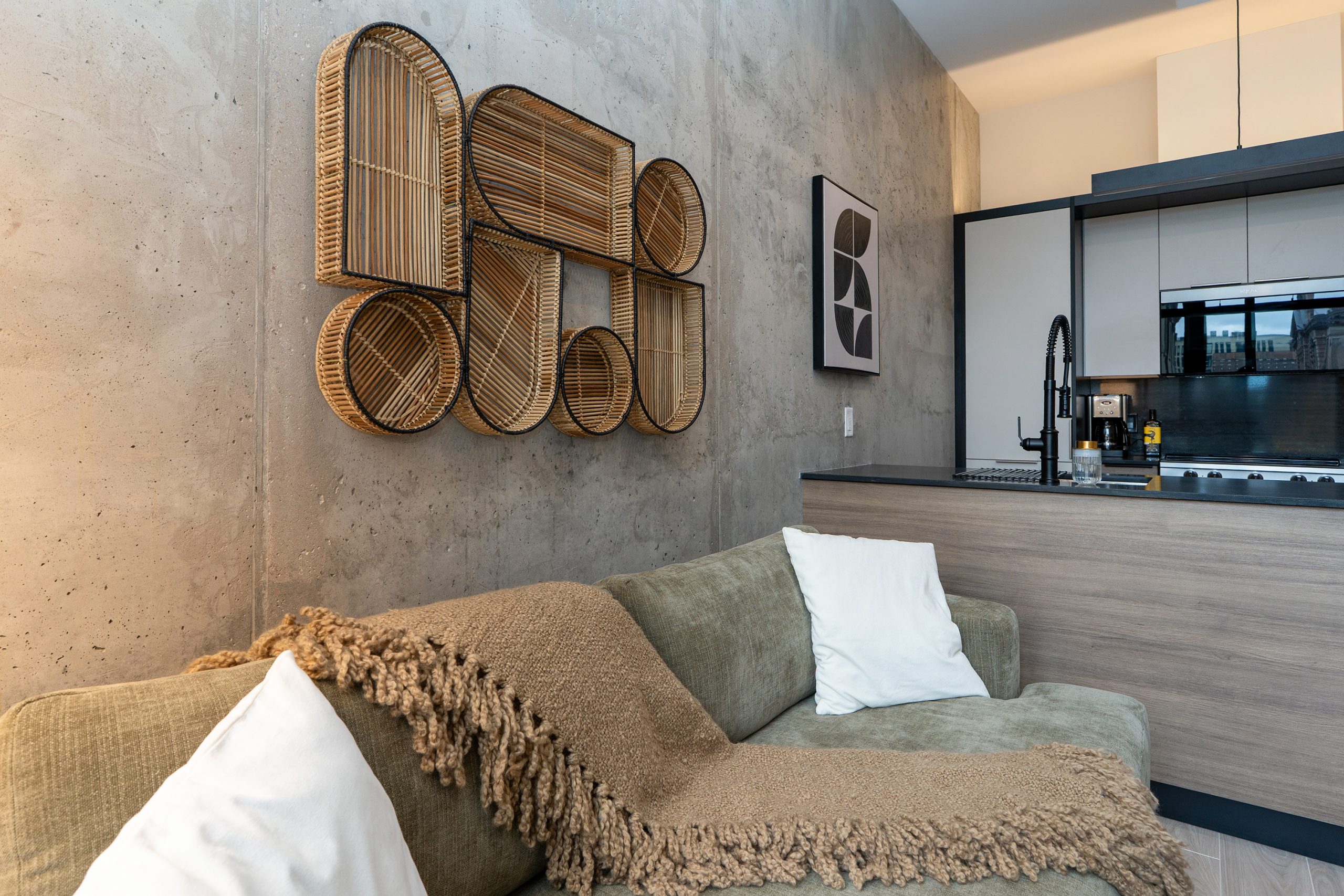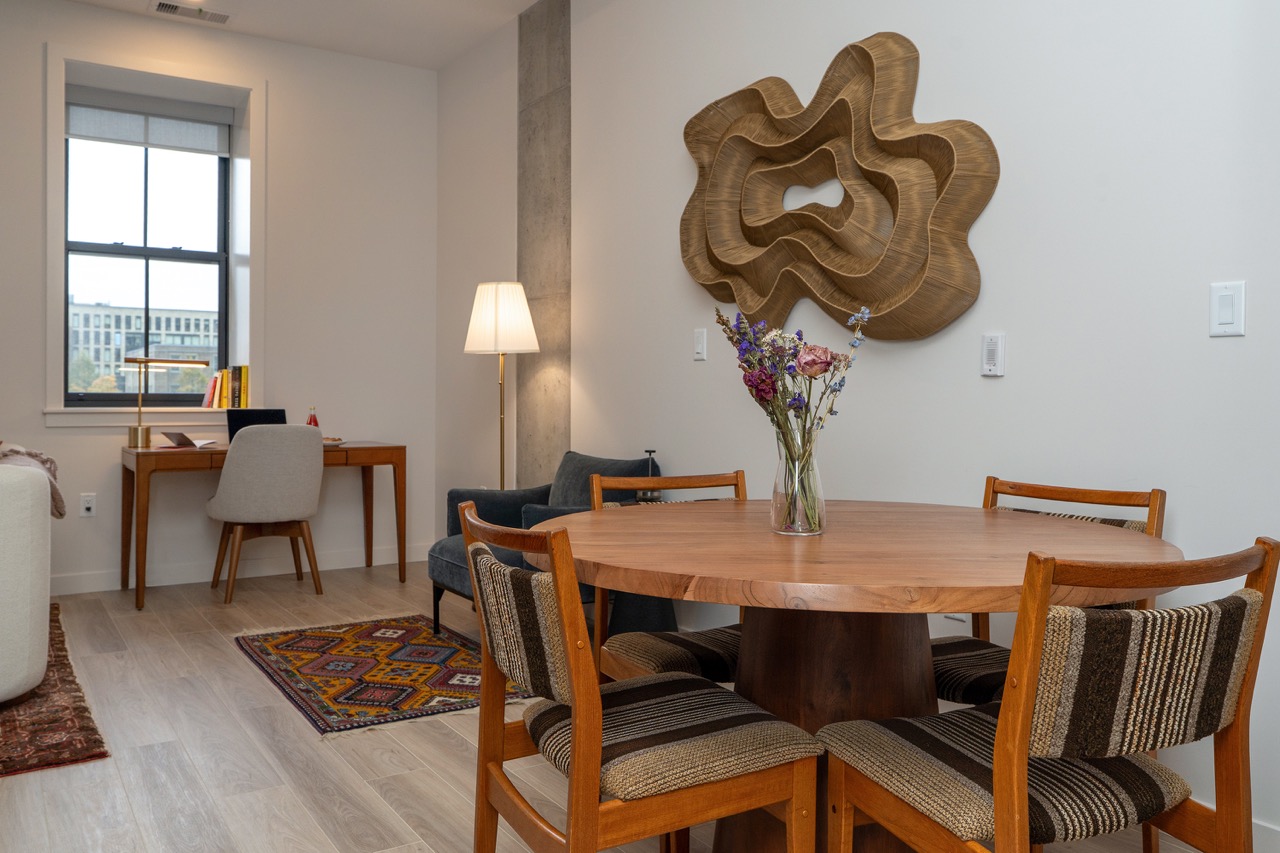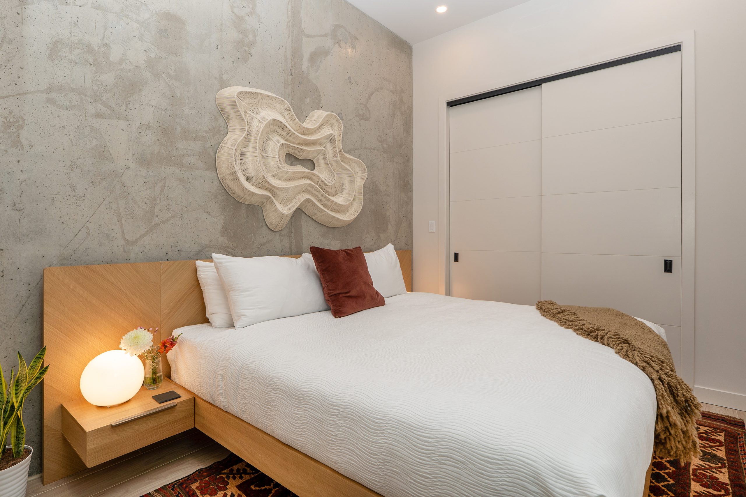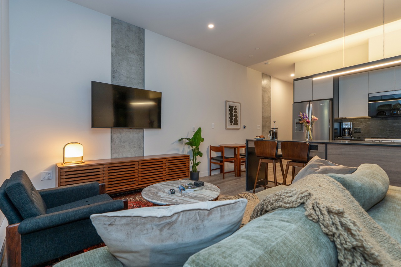 Granville: 1730 Granville Street places you at the centre of downtown Halifax, one block from the waterfront and surrounded by the streets that define the city. Halifax City Hall and Province House are just steps away, with the harbour boardwalk a short walk down the street. The building occupies the historic Kenny-Dennis Building — one of Halifax’s oldest commercial addresses, originally built in 1863 as part of the Press Block. That history is still present in the streetscape, now layered with restaurants, cafés, and everyday destinations, including The Highwayman and morning coffee at Weird Harbour. Inside, furnished one- and two-bedroom apartments offer full kitchens, in-suite laundry, and secure underground parking. Interiors combine mid-century modern furniture with Persian textile accents — creating spaces that feel grounded and composed within a more energetic urban setting. Whether you’re here for a few nights or a longer stay, Granville offers direct access to the city — with a space that lets you step back from it when you need to.