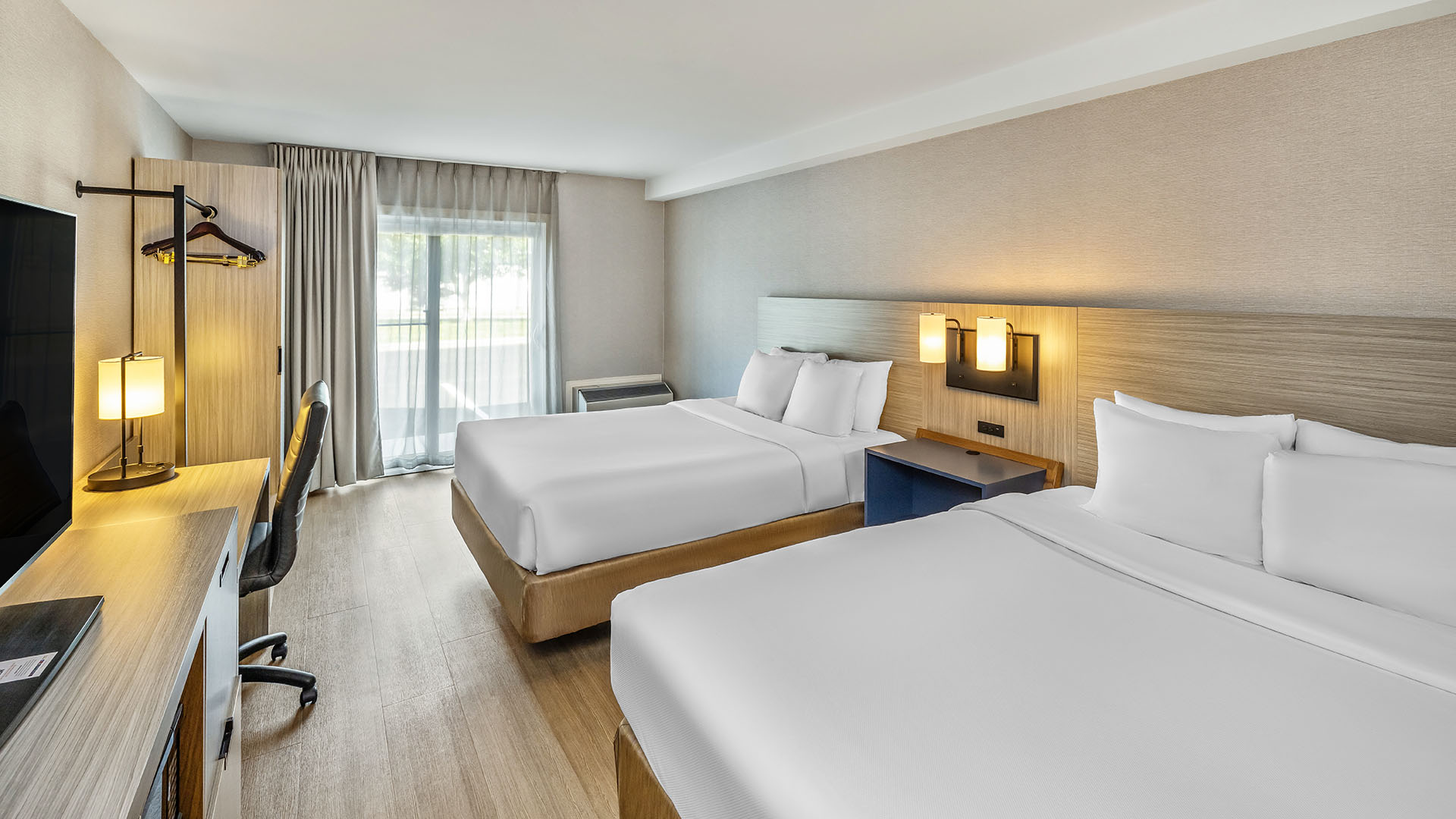 The hotel offers newly renovated rooms with thoughtful amenities including 50” flat-screen TVs, coffee makers, microwaves and mini-fridges. As well as a BBQ for guest use May to October. Guests can enjoy complimentary perks such as a hot breakfast each morning, free convenient parking and free Wi-Fi