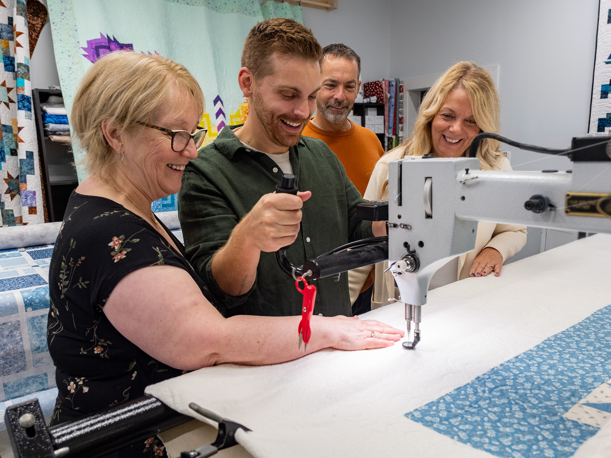 A collection of hand-quilted pieces, mostly queen- and king-sized quilts, based on designs by an artist practicing the craft for 25 years. Specialty orders accepted; shipping available. A large selection of high-quality fabric is available as well.