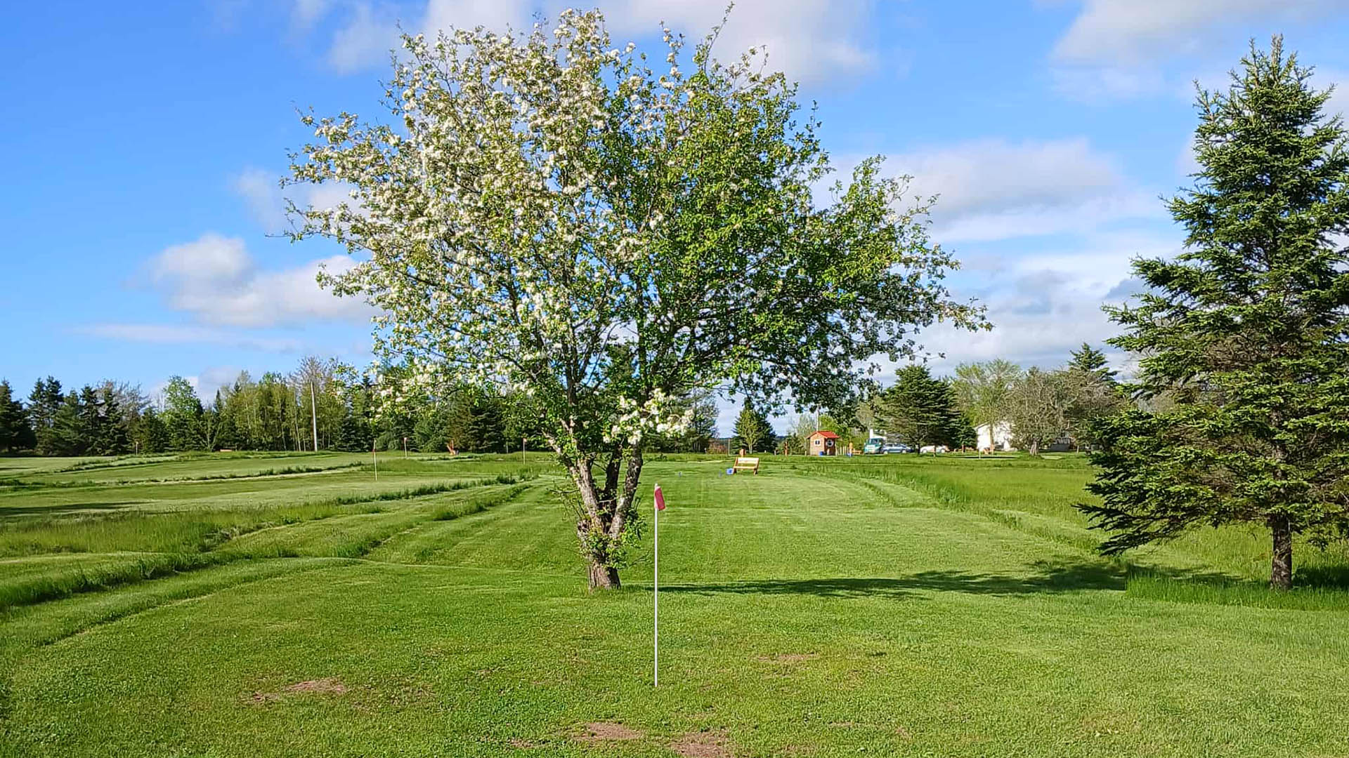 Our course features 18 holes, ranging from a 90-yard par 5 to a 25-yard par 3, totalling 899 yards. Park Golf is played on shorter fairways – 9 holes can’t exceed 500 yards in total – and our course features 18 holes spanning 899 yards, with individual fairways ranging from 25 to 90 yards. The course runs alongside the beautiful tidal Shubenacadie River, where you can often spot boats, Bald eagles, and other wildlife as you enjoy playing on an easy, scenic walk surrounded by nature.