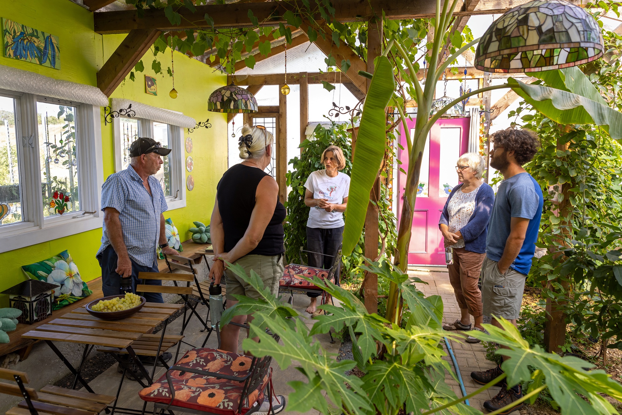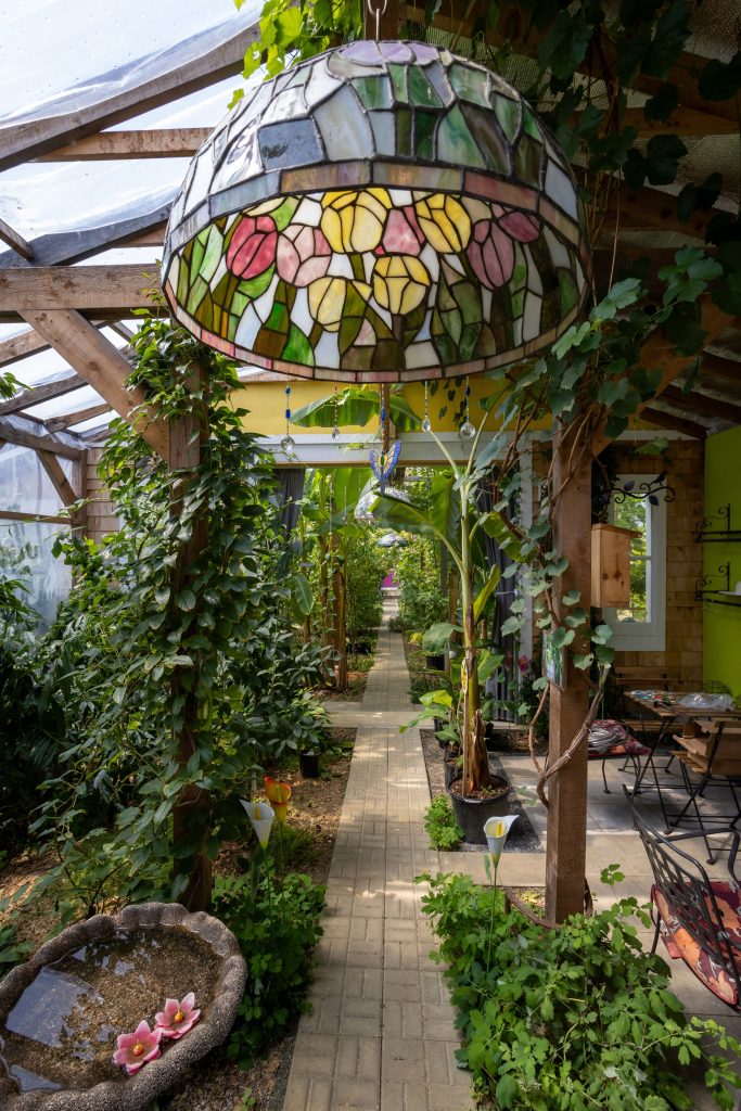 Join owner and biologist, Annette Clarke for a unique botanical experience and tour of her indoor fruit forest and outdoor orchard. Learn about the many exciting plants they grow in a fun and educational way. Included is a peak into the stained glass decorated off-grid Tiny Home and wee little Tiffany lamp museum.