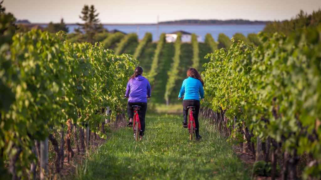 Pedal through the rolling vineyards, orchards, and farmlands of the Annapolis Valley on this scenic cycling tour showcasing Wolfville and Annapolis Royal. From the blossoms of spring to the warmth of summer and the golden glow of fall, each season offers its own charm. Along the way, enjoy local wines, fresh farm-to-table flavours, and sweeping valley views that make this a feast for both body and soul.