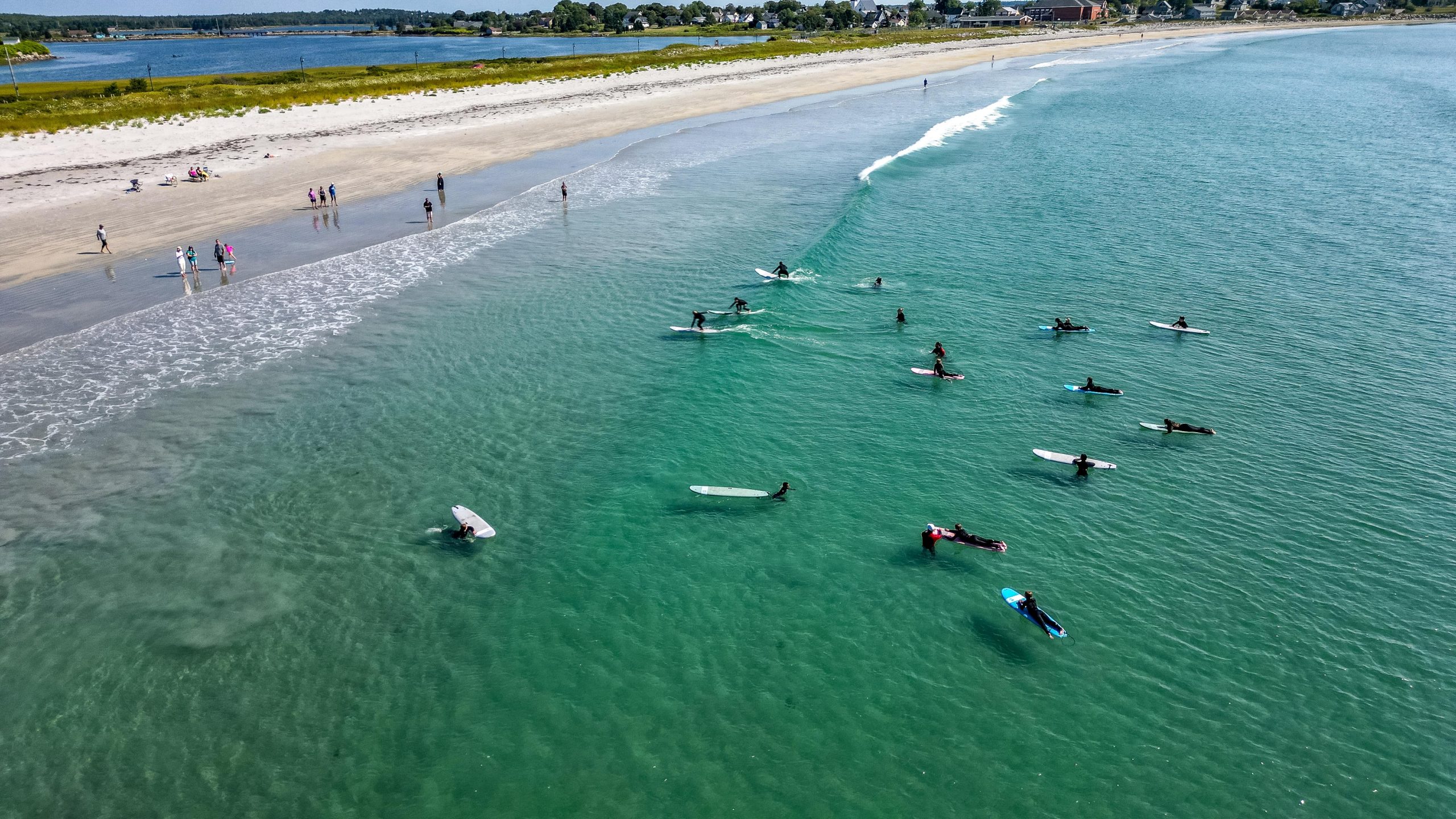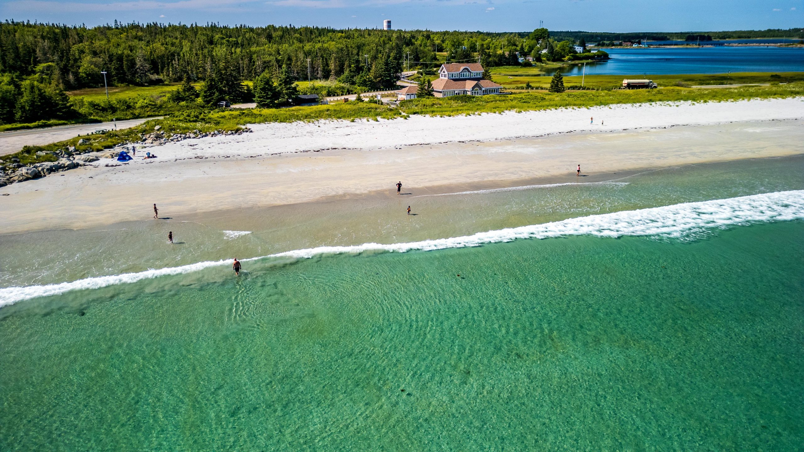 Stretching over a kilometer, the soft white sand and turquoise waters make it perfect for beachcombing, swimming, and relaxing. During the summer, the beach is home to piping plovers, a small and endangered shorebird species that nests along the sand.