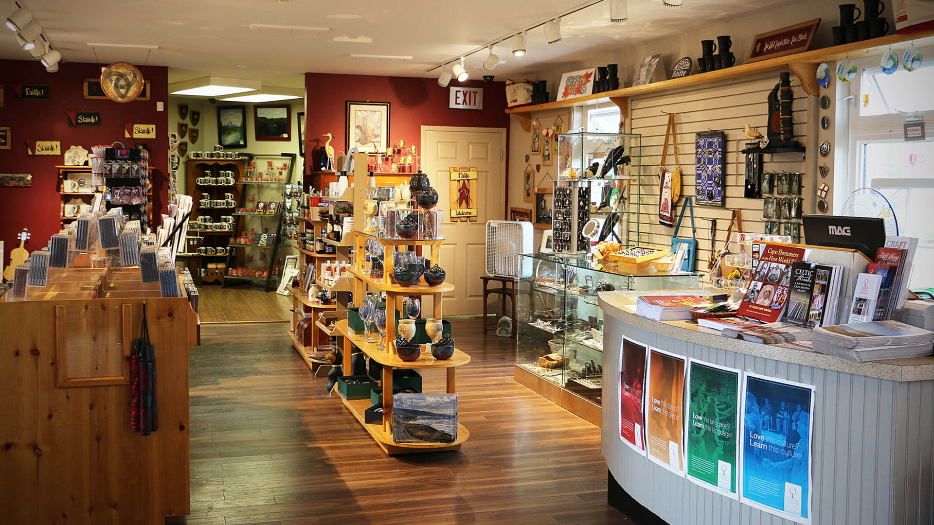The Craft Shop at Colaisde na Gàidhlig is your first stop when visiting our campus in St. Ann’s. Be sure to make room for a visit next time you’re in the area as it’s a haven for true gems and treasures. Home to great variety, the Craft Shop specializes in Celtic jewellery, Gaelic language and music books, local and regional CDs and DVDs, as well as a vast selection of handcrafted items like pottery, woodcarvings, stained glass, clothing, greeting cards, and books from Cape Breton and surrounding areas.