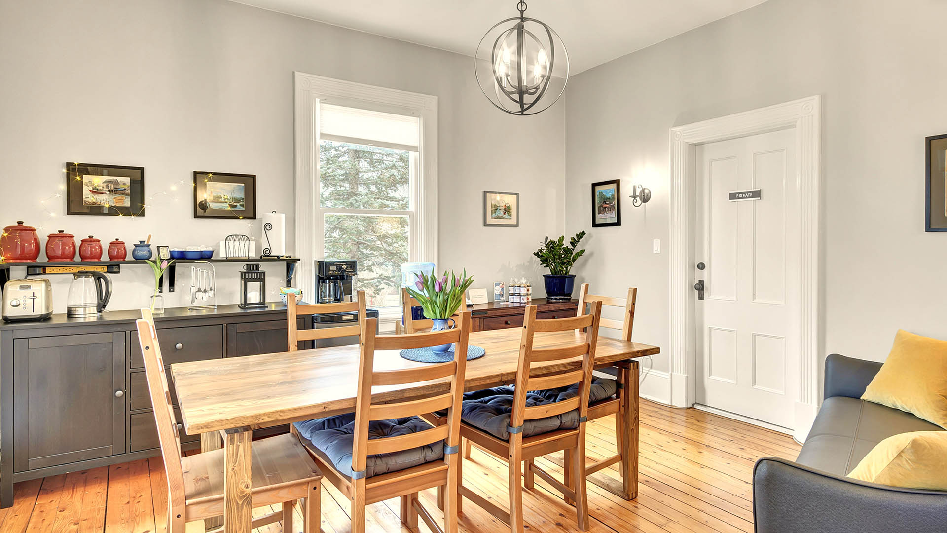 Our accommodations feature three bright and modern guest suites, each equipped with private ensuite baths, beautiful views, WiFi, smart TVs with Netflix, mini-fridges, and whisper-quiet air conditioning. Our two-bedroom suite is ideal for families and small groups, boasting a king-sized bed in one room and twin beds in the adjoining room.