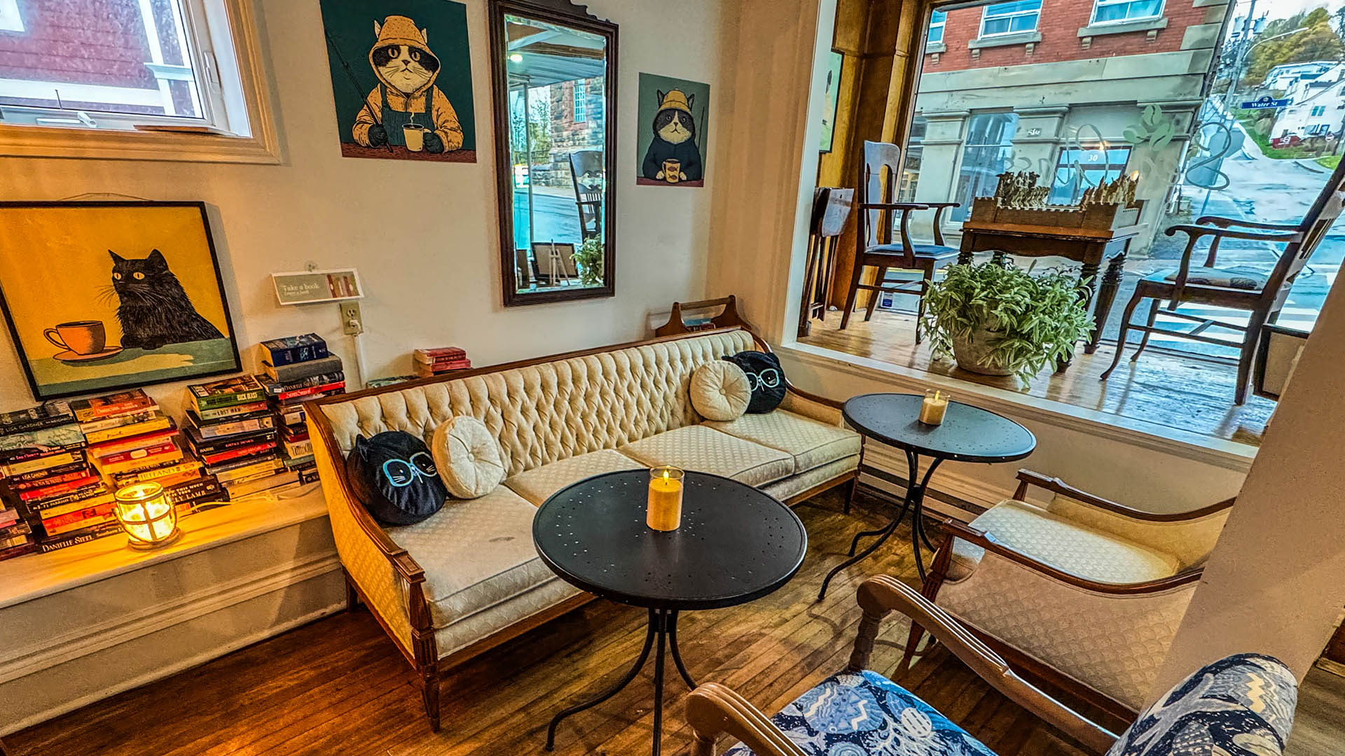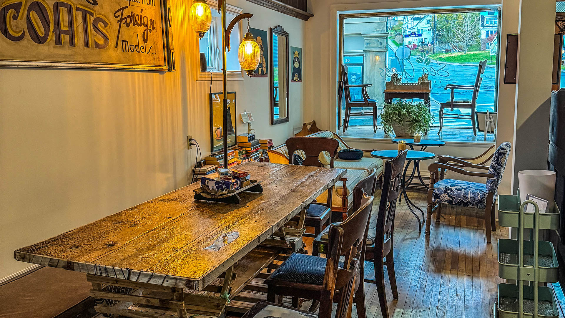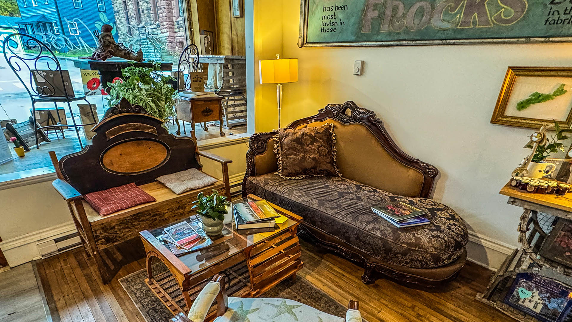 We serve Nova Scotia products, including coffee, tea, honey, dairy, and locally sourced food.