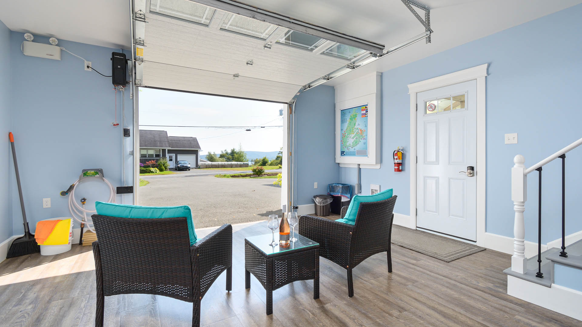 The ground level in both the Blue Lighthouse and the Green Lighthouse is a garage area for secure parking of motorcycles, sports car, ATVs, mountain bikes/bicycles, and/or snowmobiles and comes complete with its own ½ bath and a countertop & sink for cleaning your safety equipment.
