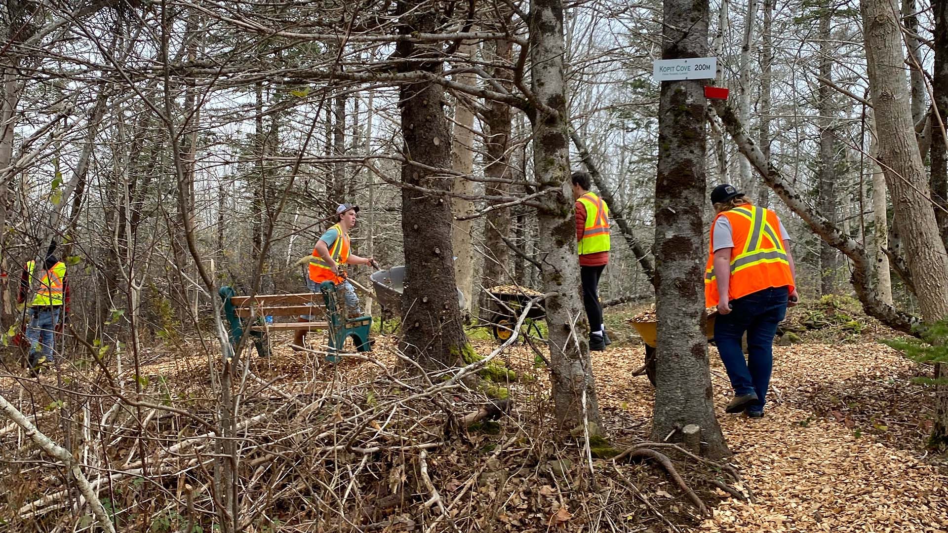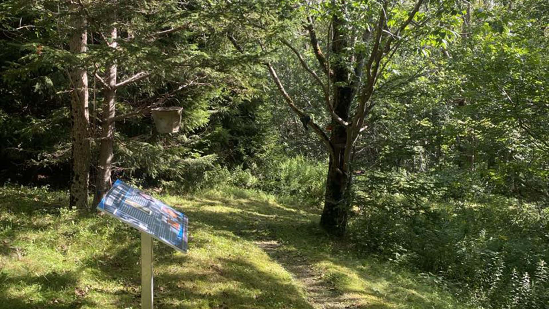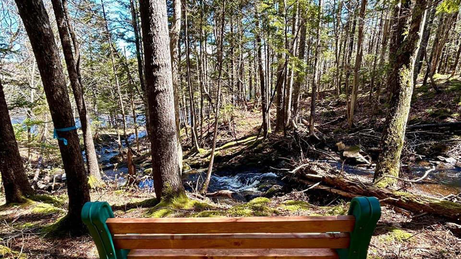 7 kilometres of single-track woodland trails five minutes from town. Trail loops around Van Tassel Lake, and one spur leads to a summit look-off. Picnic tables, benches, and great views.