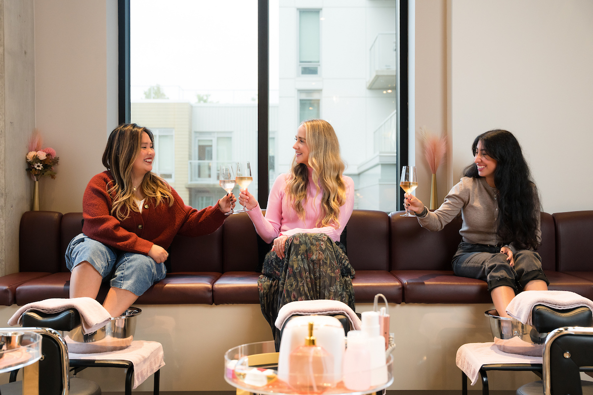 Price: $130.00 + tax, per person. Includes $30 gift certificate at Crème + gel pedicure and 5-ounce glass of wine at The Wine Spa.