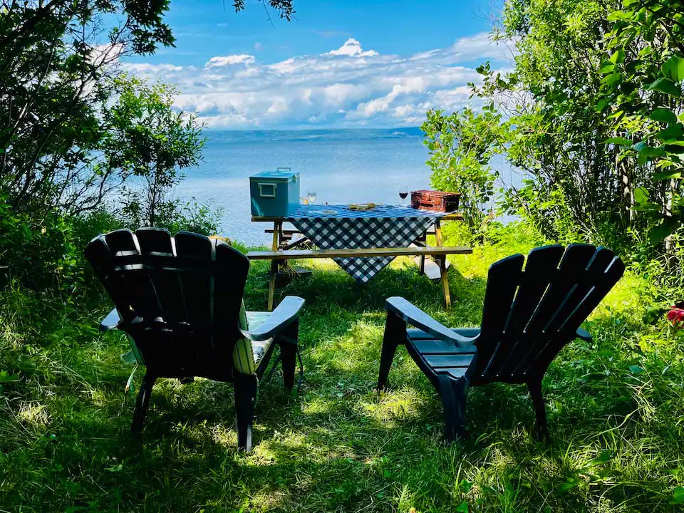 The Ebb Tide Room offers a spacious room with a king size bed, private bathroom, private entrance, WIFI, TV, fridge, coffee/tea facilities, patio and outdoor seating with sunset views of the Bay of Fundy.